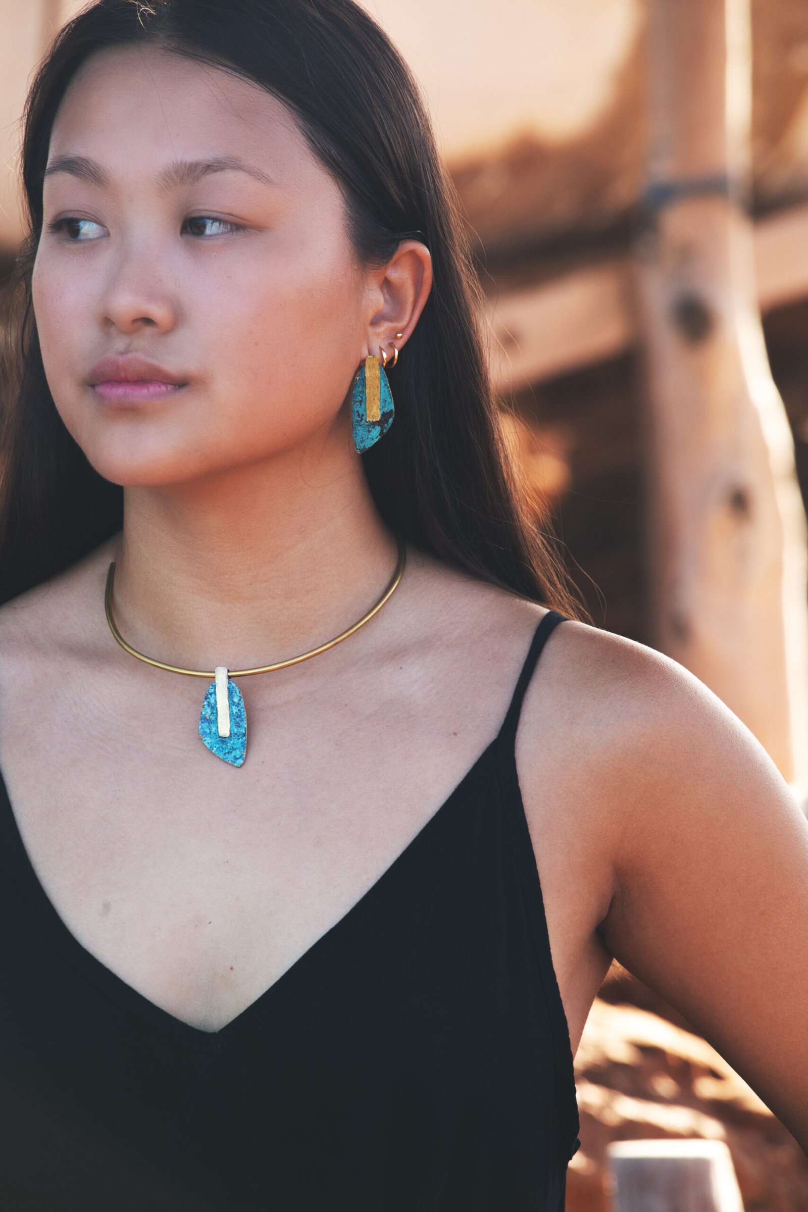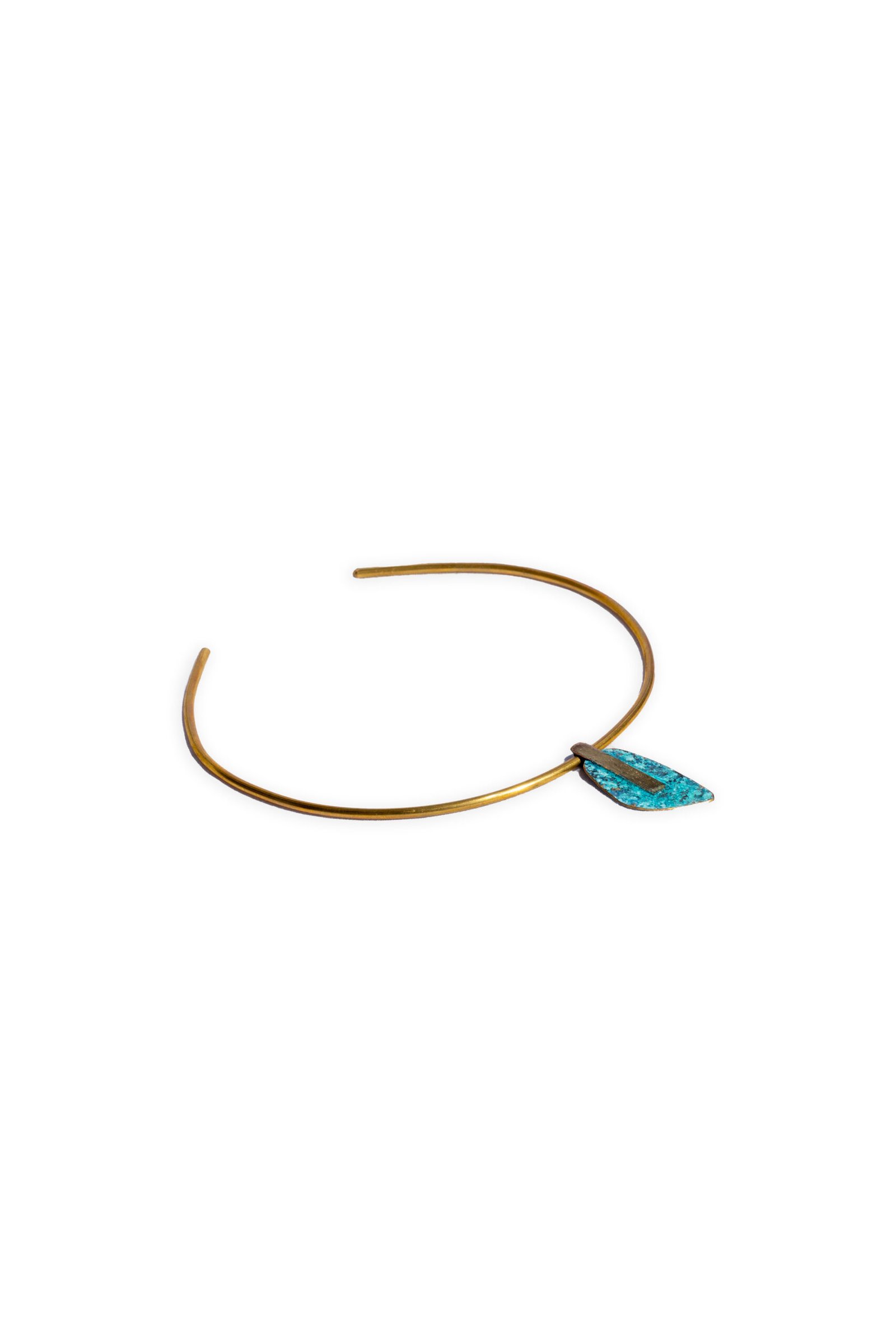 Gargantilla ajustable de latón oxidado con pátinas verdes y turquesas