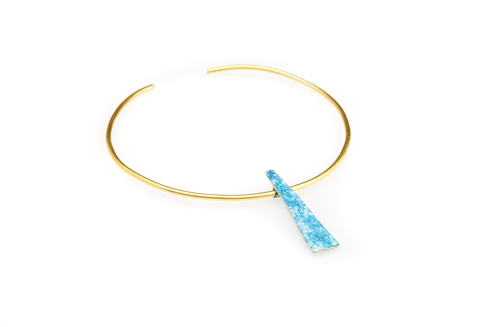 Gargantilla ajustable de latón oxidado con pátinas verdes y turquesas.